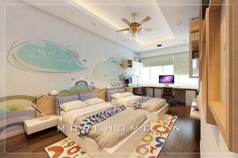 Mẫu thiết kế phòng ngủ 2 bé trai được nhiều khách hàng lựa chọn tại Morehome, liên hệ với chúng tôi để được tư vấn và báo giá cho bạn