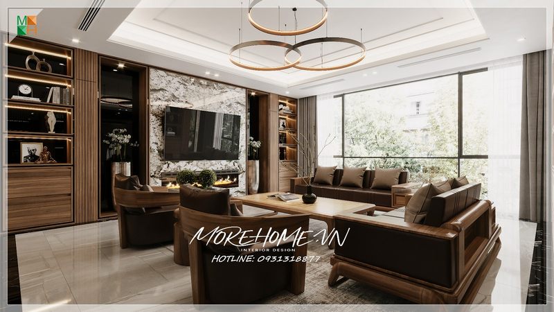 Năm nay, phòng khách không chỉ đơn thuần là nơi tiếp đón khách mà còn trở thành không gian sống động, phản ánh phong cách và cá tính của gia chủ. Các thiết kế hiện đại đang khai thác tối đa ánh sáng tự nhiên, sử dụng các cửa sổ lớn hoặc kính cường lực để kết nối bên trong với thiên nhiên bên ngoài. Điều này không chỉ tạo cảm giác thông thoáng mà còn giúp cải thiện tâm trạng của những người sống trong ngôi nhà.