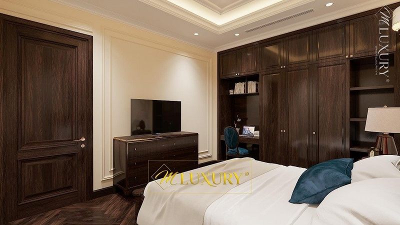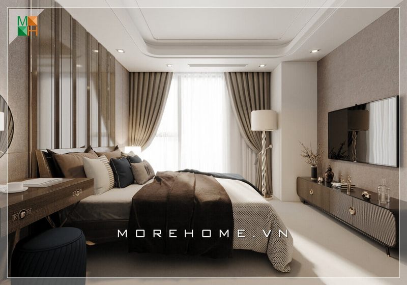 Mẫu thiết kế nội thất phòng ngủ gam màu trung bình cung cấp cho gia chủ không gian nghỉ ngơi sang trọng và cao cấp.